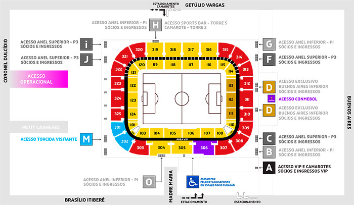 *Devido aos check-ins dos Sócios Furacão e à quantidade de entradas VIPs que devem ser destinadas à CONMEBOL, não serão vendidos ingressos para o Setor Black