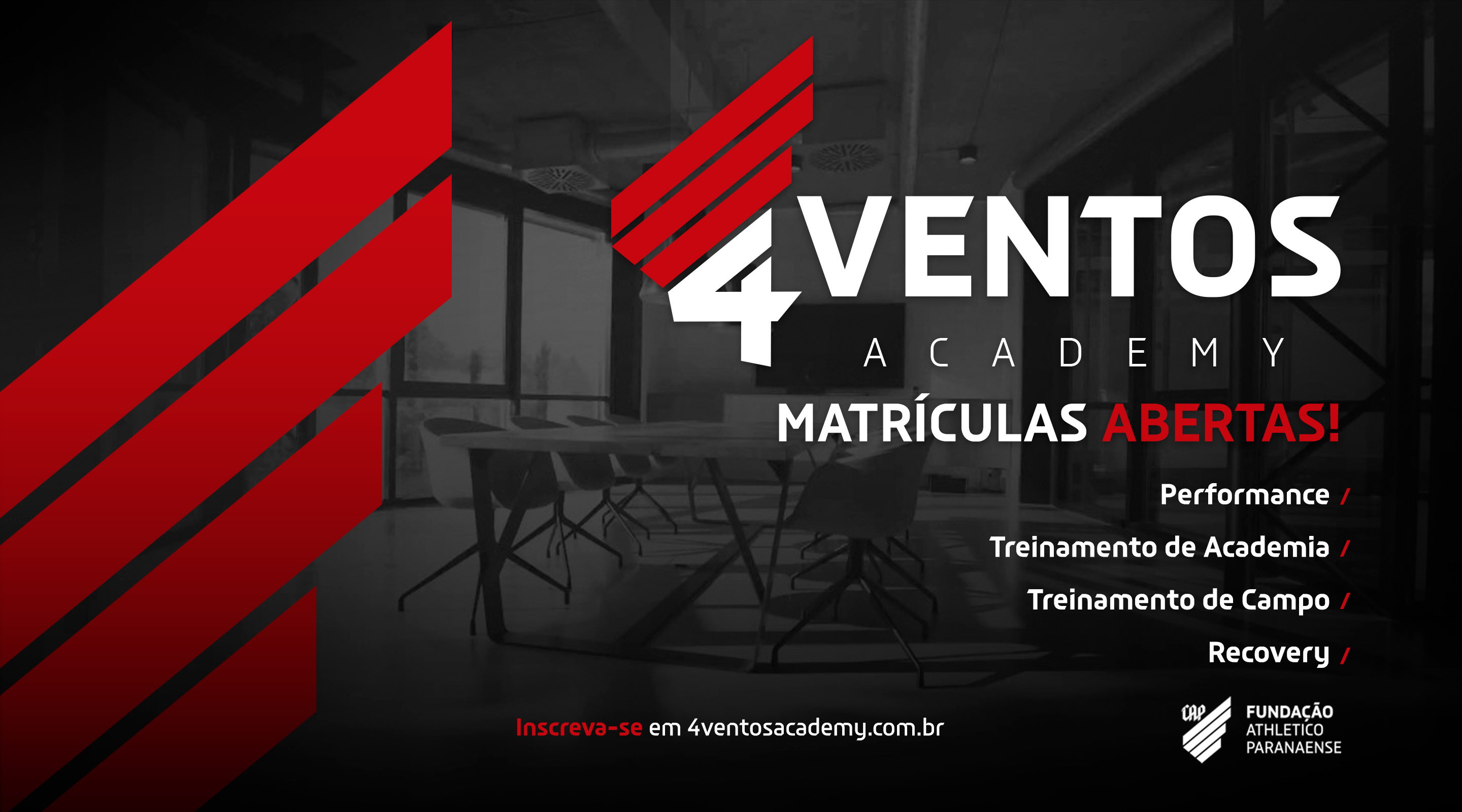 A 4 Ventos Academy é uma iniciativa do Furacão, através da FUNCAP (Fundação Athletico Paranaense), que tem o objetivo de formar profissionais de excelência para as principais funções estratégicas do futebol e também de outros esportes. Os cursos oferecem uma experiência única, que simulam um dia de jogo para garantir uma aprendizagem funcional e efetiva. São duas modalidades: online (100% digital) e online com experiência prática presencial.