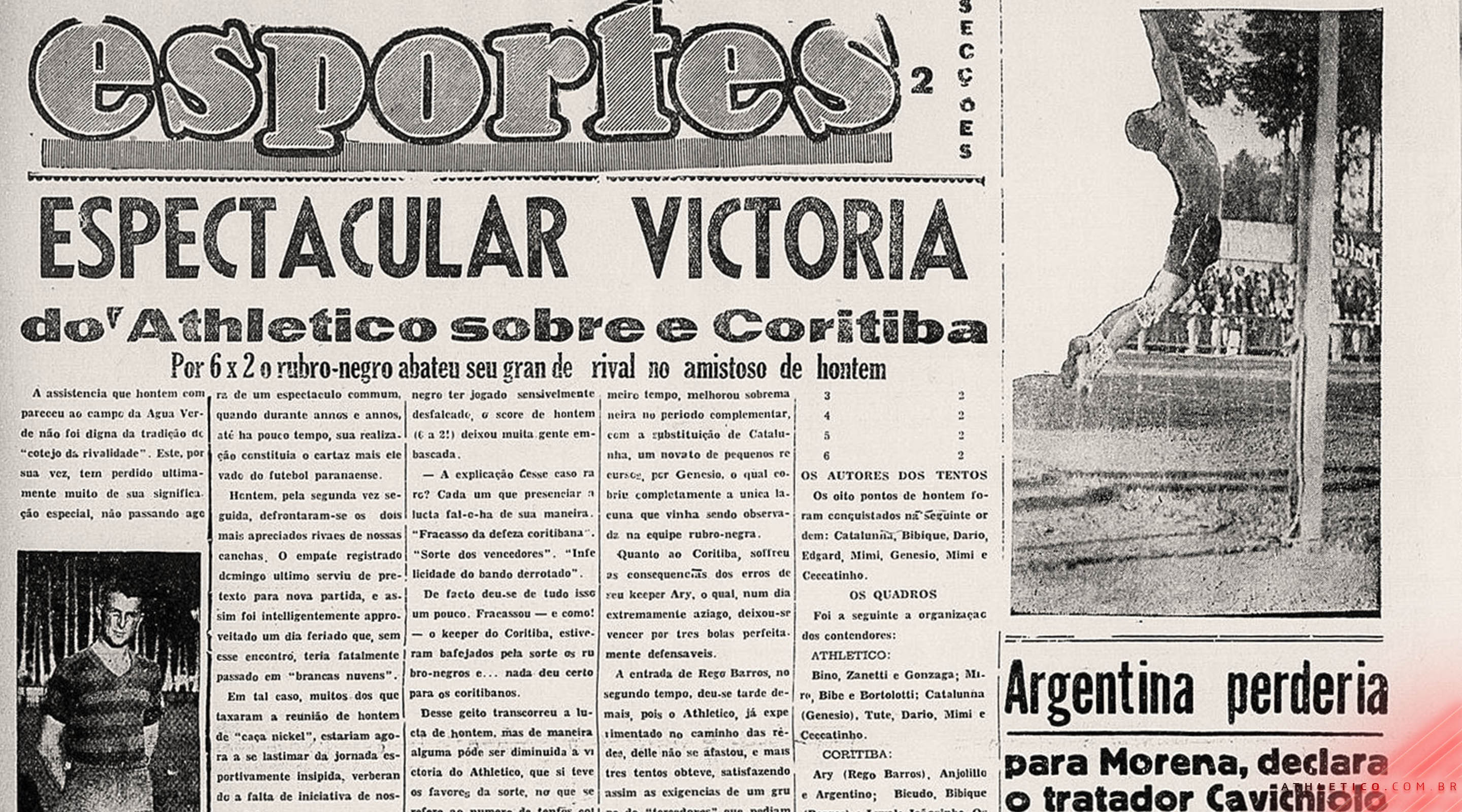6 a 2! Maior goleada rubro-negra no Athletiba aconteceu há 83 anos