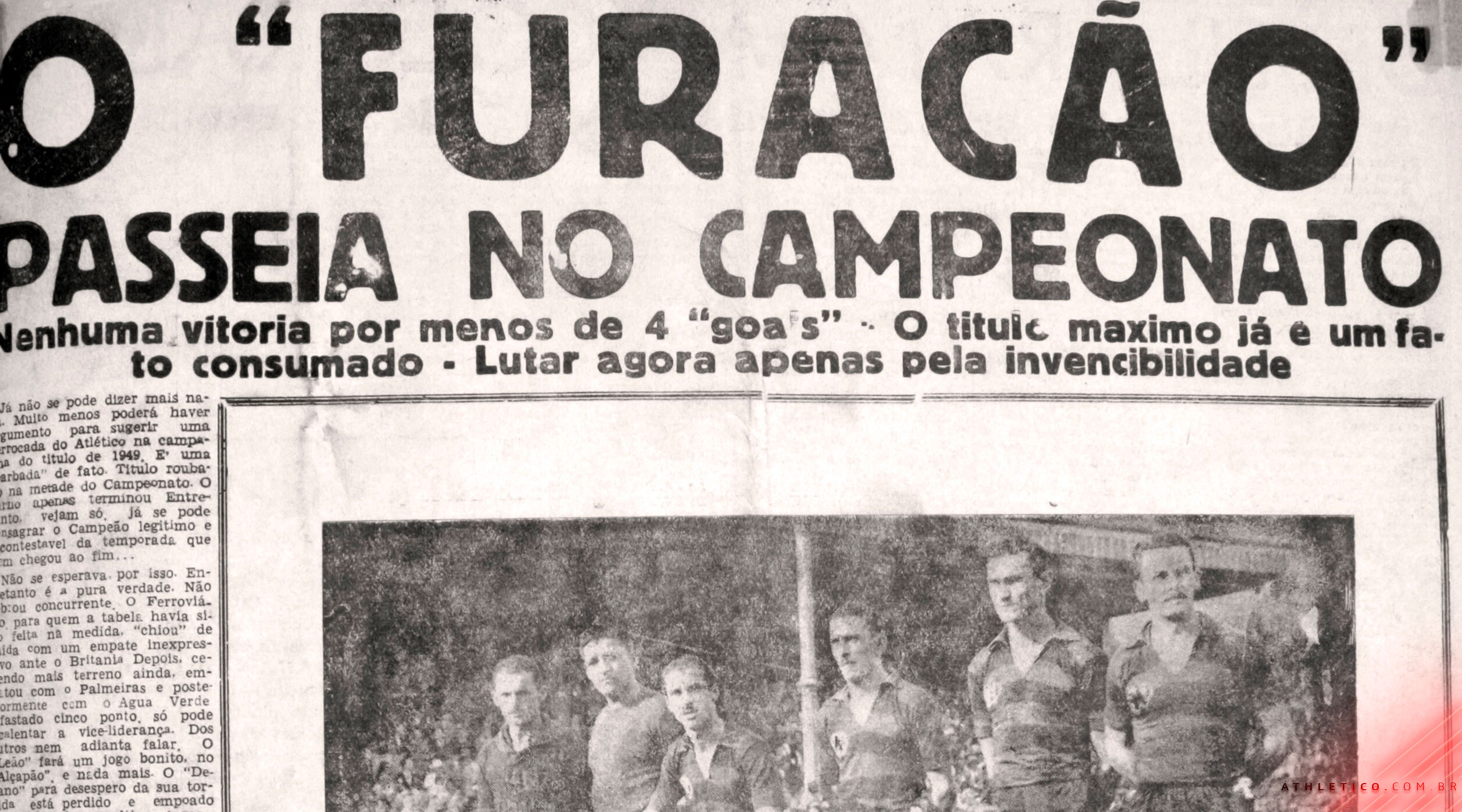 O título que marcou a identidade rubro-negra para sempre completa 73 anos neste sábado (19). No dia 19 de novembro de 1949, o Athletico goleou o Juventus por 4 a 0, garantiu a conquista do Campeonato Paranaense e ficou para sempre conhecido como o Furacão.