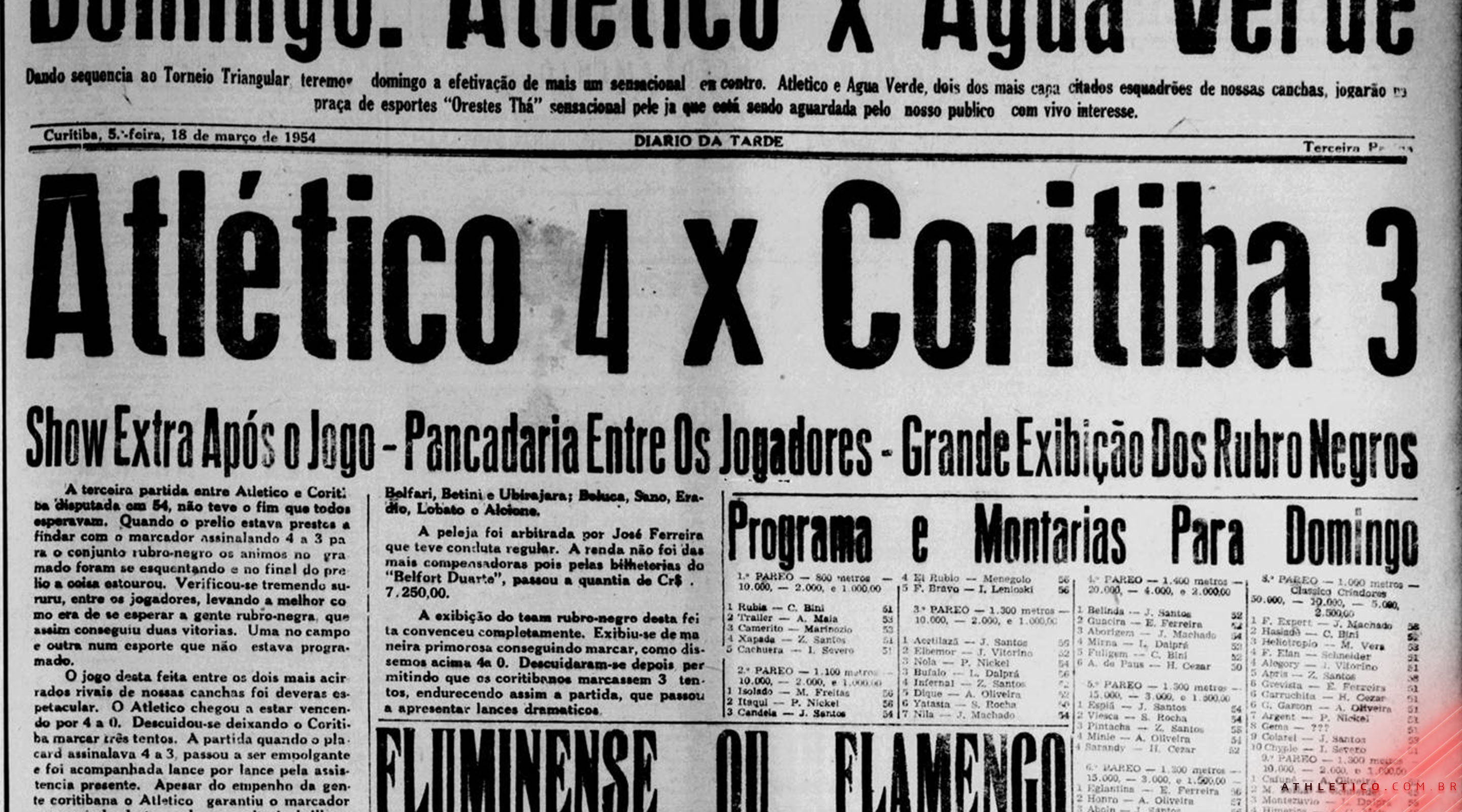 Com os brios atiçados, o rival aproveitou a desconcentração dos athleticanos. Periquito descontou aos 33′ e o artilheiro coxa-branca Ivo marcou aos 40′ e aos 44′. Mas não houve tempo para impedir o triunfo rubro-negro por 4 a 3.