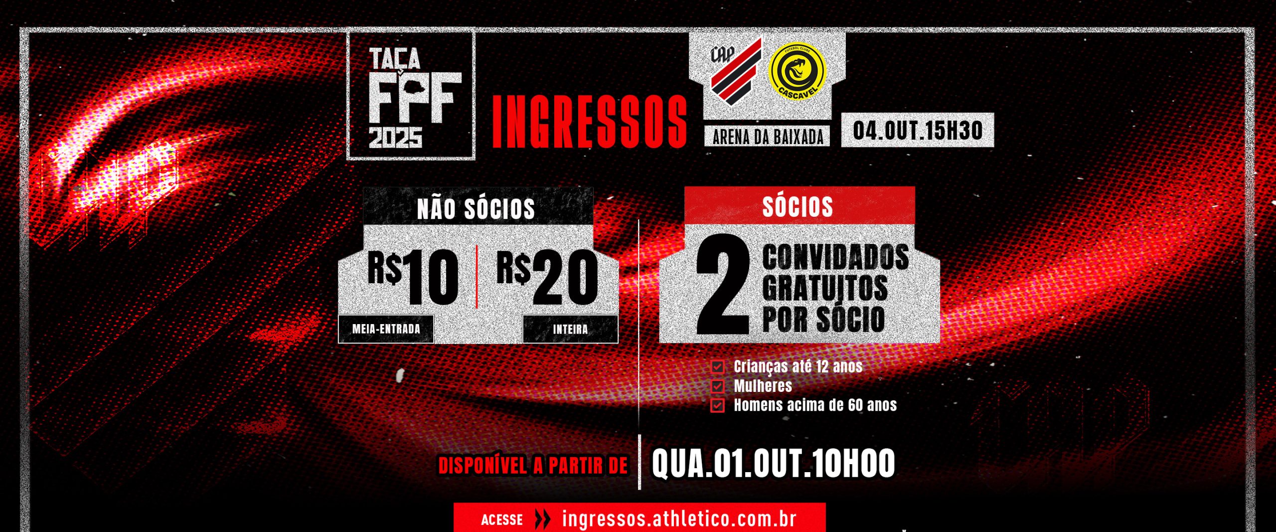 Os ingressos para a torcida rubro-negra custam R$ 60 (inteira) e R$ 30 (meia-entrada). Os torcedores athleticanos devem adquirir as entradas através do site Futebol Card.