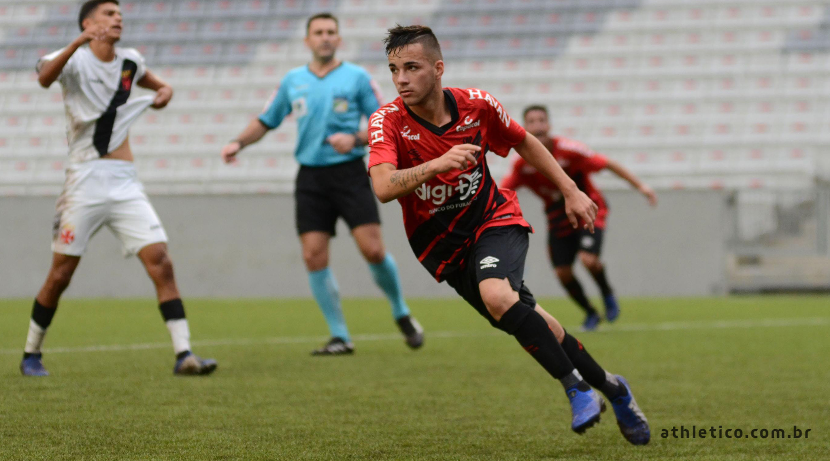 O Athletico Paranaense entrou em campo, na tarde desta quarta-feira (29), pela sétima rodada do Campeonato Brasileiro Sub-17. A equipe rubro-negra empatou com o Vasco da Gama pelo placar de 2 a 2, no Estádio Joaquim Américo. Os dois gols athleticanos foram anotados pelo meia João Pedro.