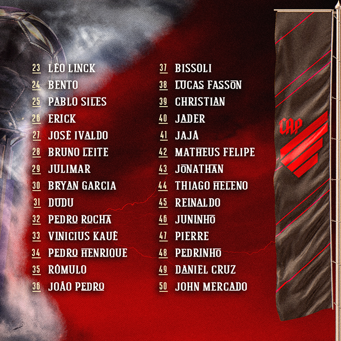 O Athletico Paranaense inscreveu, nesta sexta-feira (18), os jogadores para a disputa da CONMEBOL Recopa. O primeiro jogo diante do Palmeiras será disputado na próxima quarta-feira (23), às 21h30, no Joaquim Américo.