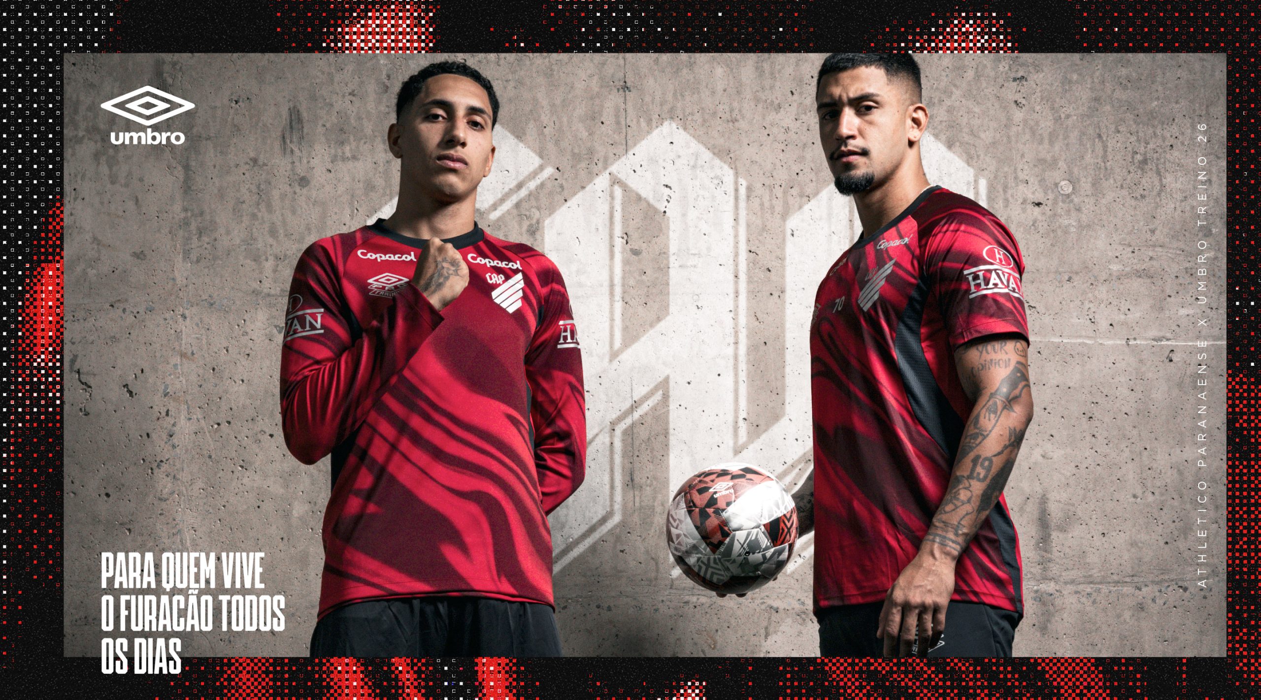 Parceira histórica do clube, a Umbro destaca a conexão entre tradição, futebol e inovação na criação das novas peças. “Desenvolver os uniformes de treino e viagem do Athletico é traduzir a força de um clube que vive o futebol de forma intensa. Nosso objetivo foi criar peças que acompanhem essa energia, respeitando a identidade do Furacão e o espírito competitivo que fazem parte da história do CAP”, diz Eduardo Dal Pogetto, diretor da Umbro no Brasil.
