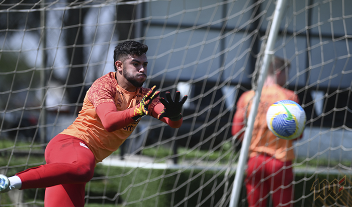Em seguida, todos foram ao gramado. O treinamento em campo teve início por volta das 10h15.