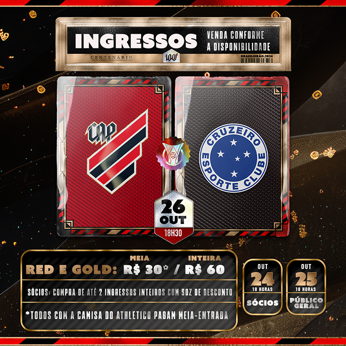 Atualizado em: 25/10, às 13h – INGRESSOS ESGOTADOS PARA TORCIDA ATHLETICANA