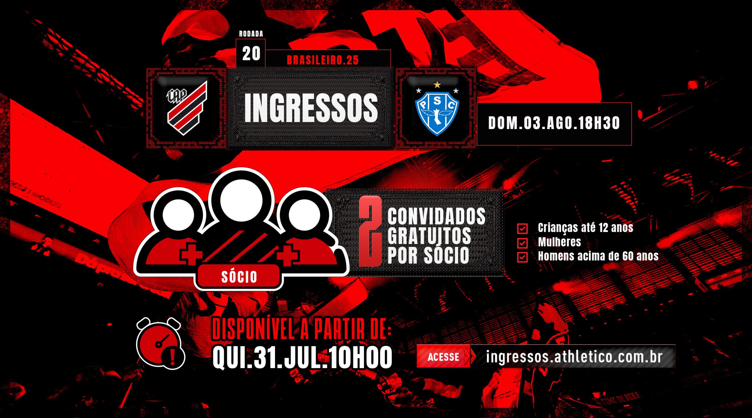 – Acesse o site ingressos.athletico.com.br a partir das 10h desta quinta-feira (31)