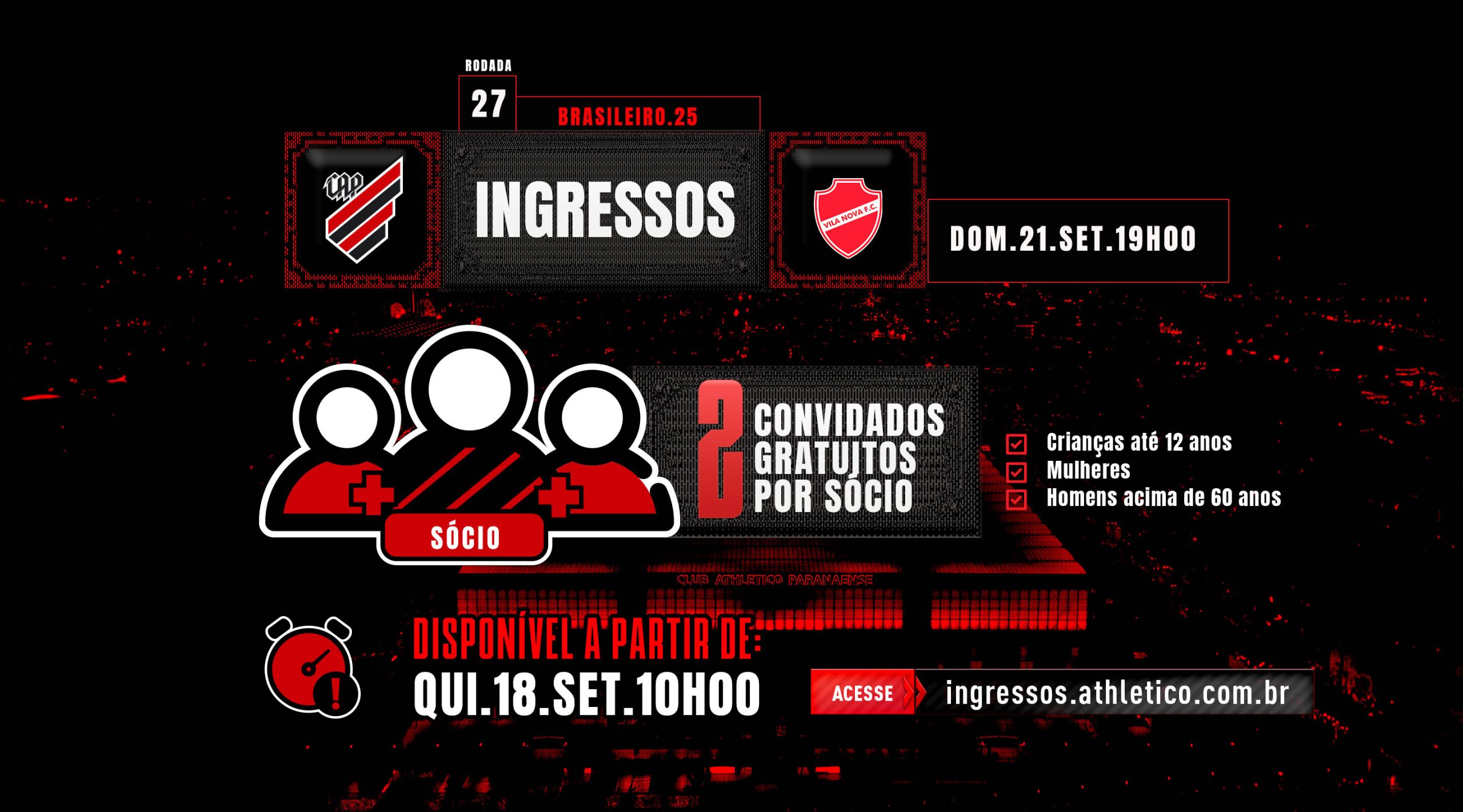 Os ingressos estarão disponíveis a partir das 10h desta quinta-feira (18), exclusivamente através do site ingressos.athletico.com.br.