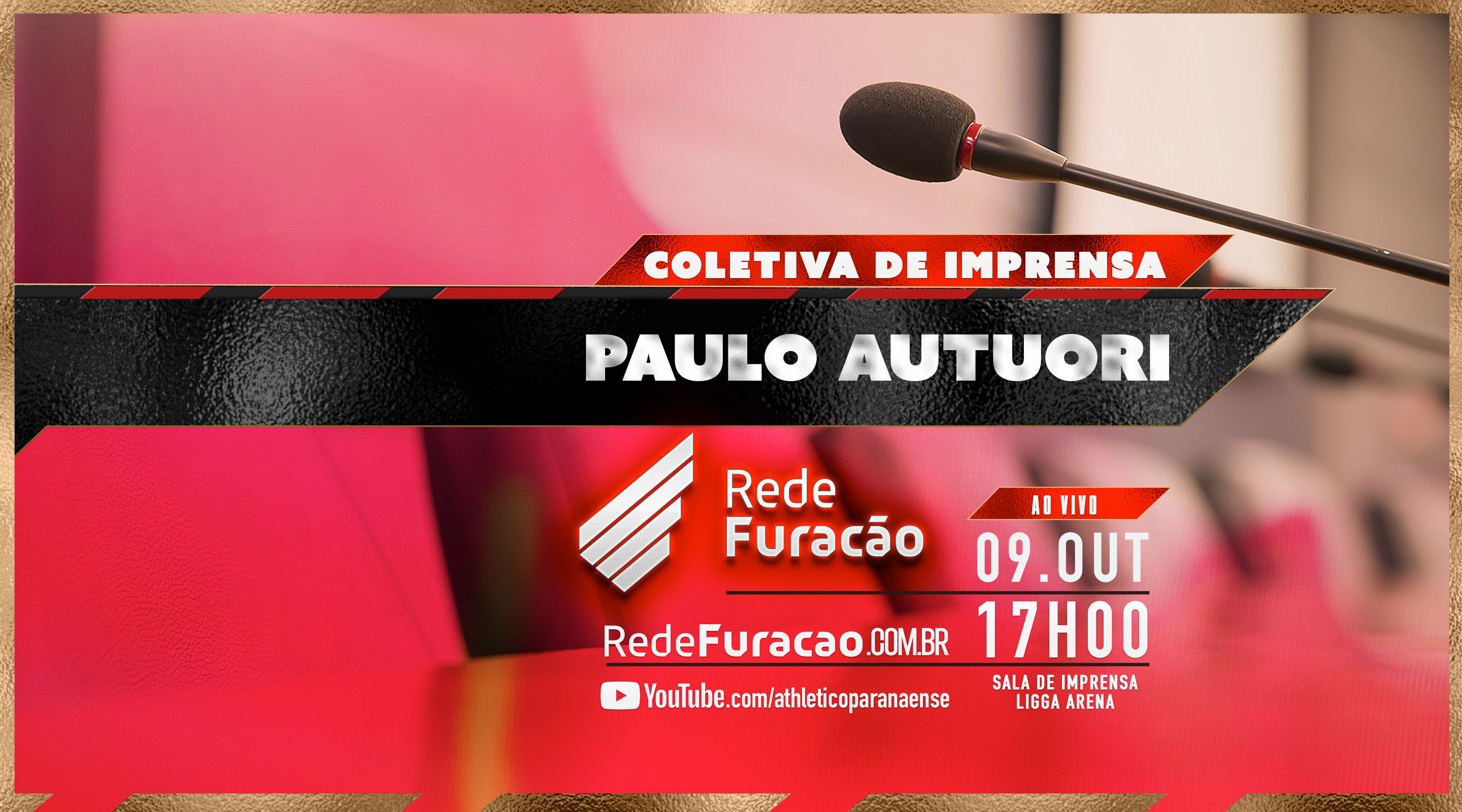O Club Athletico Paranaense convida os jornalistas para entrevista coletiva a ser realizada às 17h desta quarta-feira (9) com o diretor técnico Paulo Autuori, na sala de imprensa da Ligga Arena.