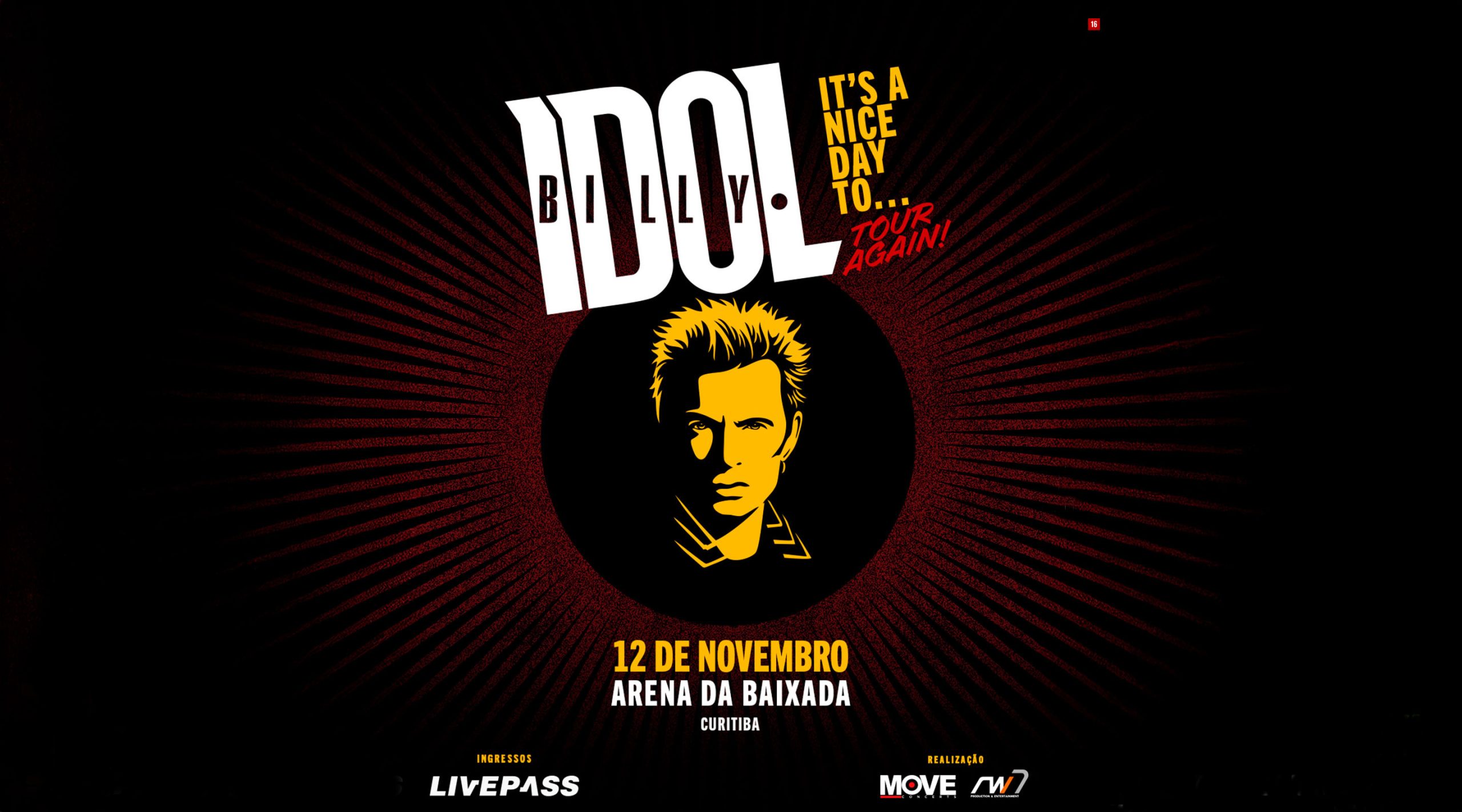 O ícone do rock Billy Idol traz a turnê It’s a Nice Day To…Tour Again! ao Brasil no mês de novembro. Billy Idol se apresentará em Curitiba, no dia 12 de novembro, na Arena da Baixada. O show na capital paranaense tem realização da MOVE Concerts e RW7 Production & Entertainment.