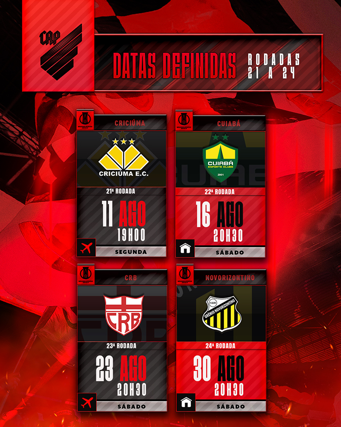 Antes dessas partidas, o Furacão tem pela frente a Ferroviária (22/07, em casa), o América Mineiro (27/07, fora de casa) e o Paysandu (03/08, em casa).