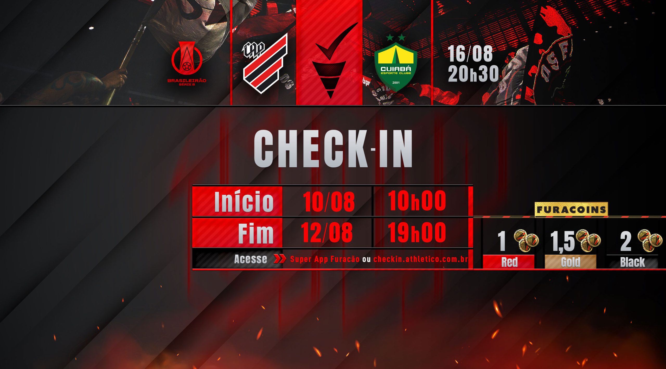 Os Sócios Furacão já podem confirmar presença pelo Super App Furacão ou no checkin.athletico.com.br.