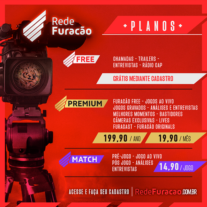 Com o plano Furacão Free, os torcedores poderão ter acesso a diversos conteúdos gratuitos, mediante cadastro na plataforma. Também será possível assistir a 30 segundos dos vídeos pagos.