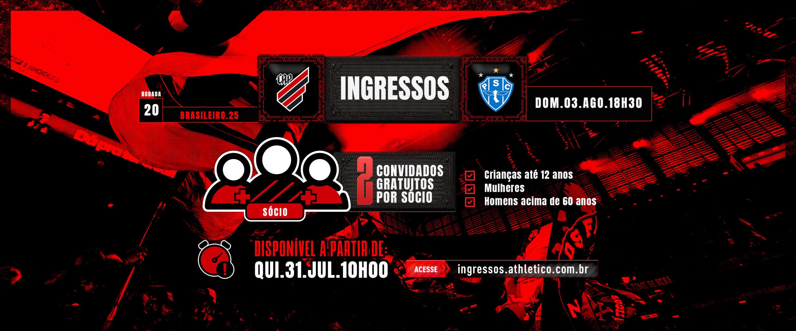 – Vendas nas bilheterias do estádio: de sábado (18), das 10h às 18h, até terça-feira (21), das 10h às 18h
