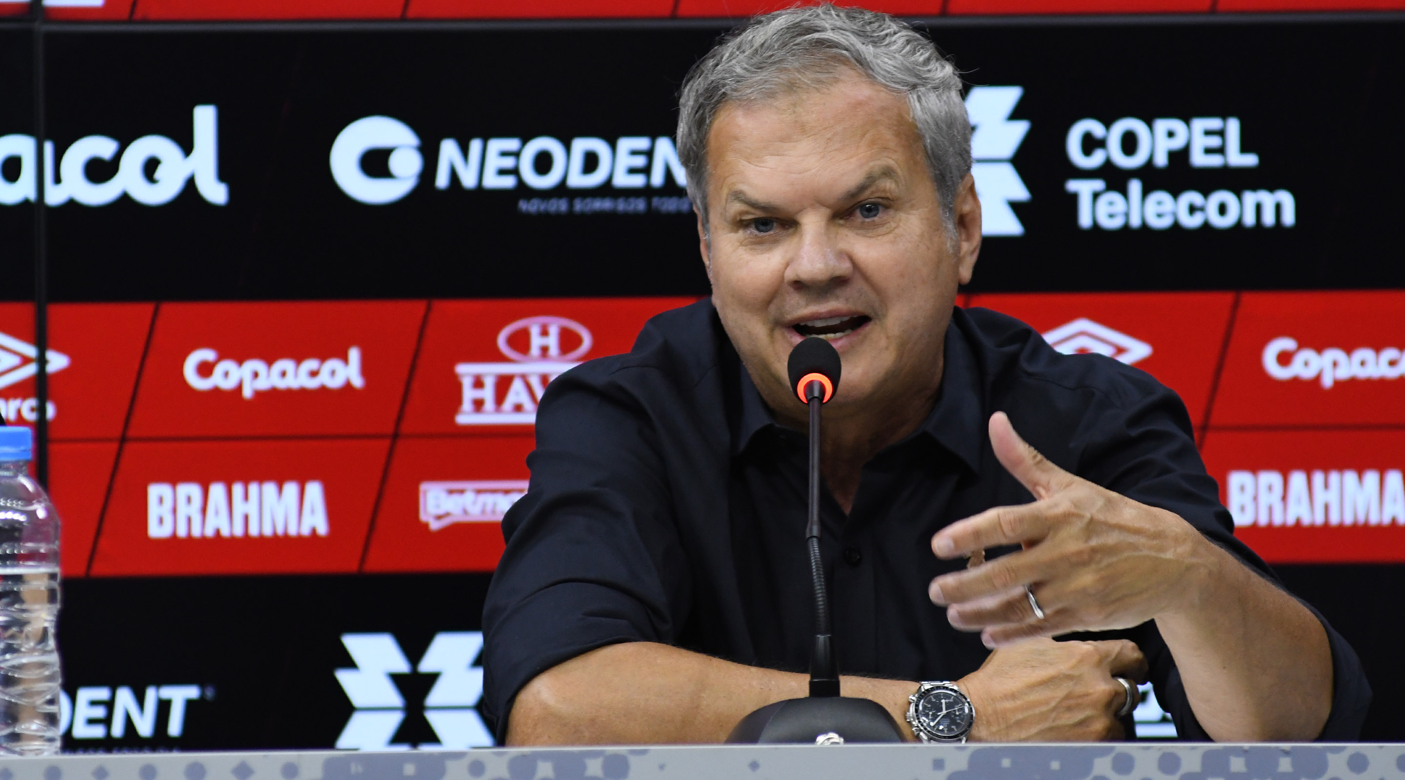 Ao lado do Presidente do Conselho Administrativo do Athletico Paranaense, Mario Celso Petraglia, o novo Coordenador do Núcleo de Saúde e Performance do Furacão falou pela primeira vez sobre o novo cargo. Carlinhos Neves comentou sobre a função, o projeto do Athletico e também comemorou o reencontro com profissionais com quem já trabalhou durante a carreira.