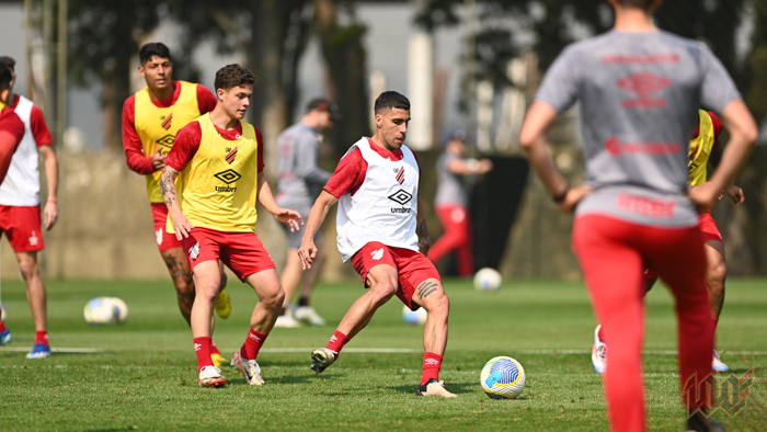 Para os demais, o treino com bola no gramado começou por volta das 10h. O técnico Martín Varini comandou um trabalho de posse de bola em campo reduzido e uma atividade voltada à saída de bola e à finalização.