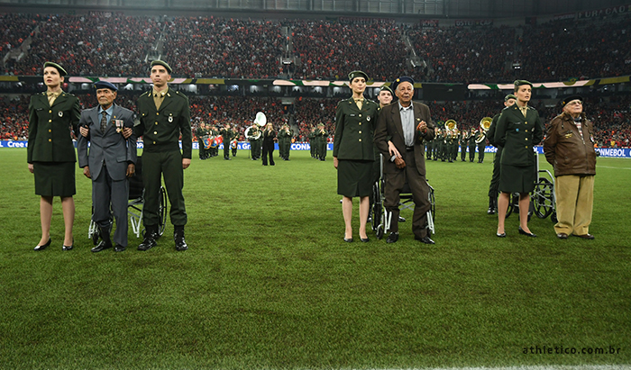 Com mais de 90 anos, os heróis foram ao gramado e acompanharam, junto com a torcida rubro-negra, a execução da Canção do Expedicionário e dos hinos nacional, do Paraná e do Rubro-Negro. A cantora paranaense Fran Tenório esteve ao lado da banda de música da 5ª Divisão de Exército.
