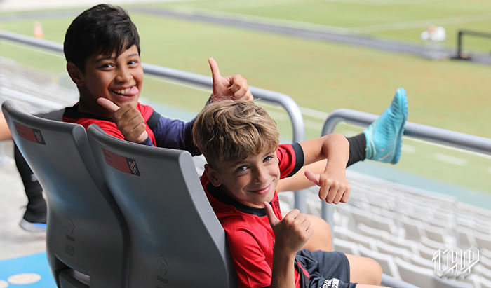 Durante o passeio, os atletas puderam explorar cada canto do estádio e sentir a emoção de estar no gramado.