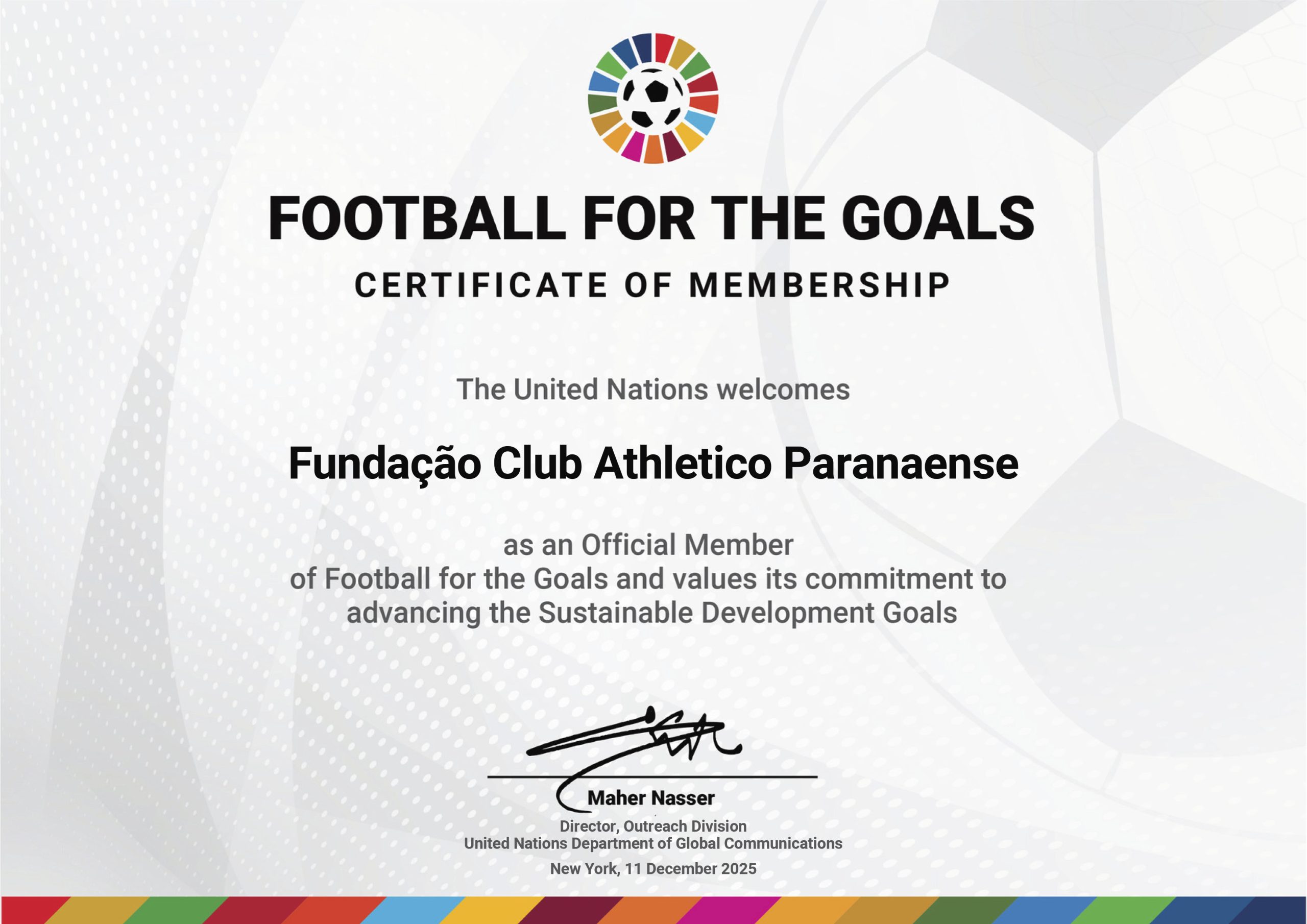 Como integrante do “Football for the Goals”, a Fundação Athletico Paranaense recebe um importante reconhecimento sobre as ações realizadas nos últimos anos e reafirma o compromisso de seguir atuando como defensora dos Objetivos de Desenvolvimento Sustentável.