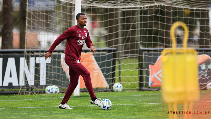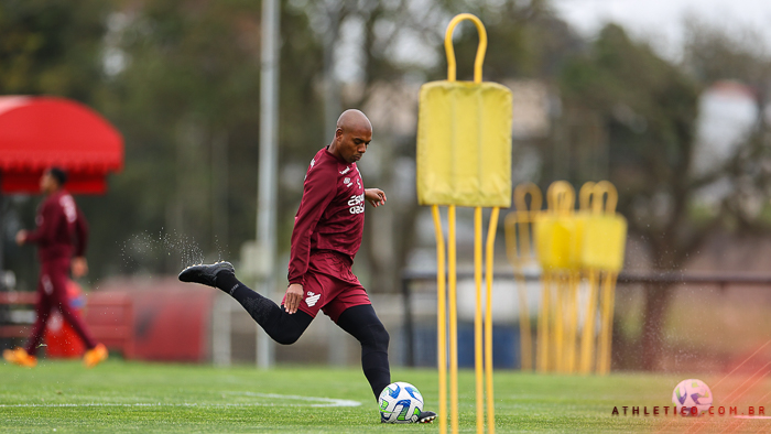 O elenco principal do Athletico realizou na manhã desta quinta-feira (7), no CAT Caju, mais um treinamento visando a partida contra o Flamengo. Foi a segunda se sete sessões de atividades programadas até a partida contra a equipe carioca, válida pela 23ª rodada do Campeonato Brasileiro de 2023.