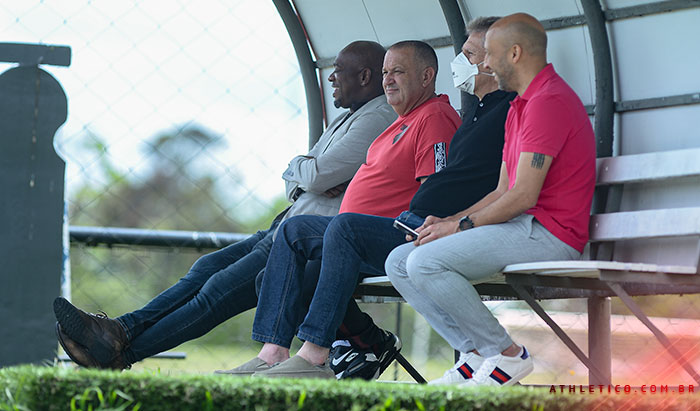 Paulo Miranda, James Freitas, Paulo Autuori e Rafael Andrade acompanham treinamento da equipe principal