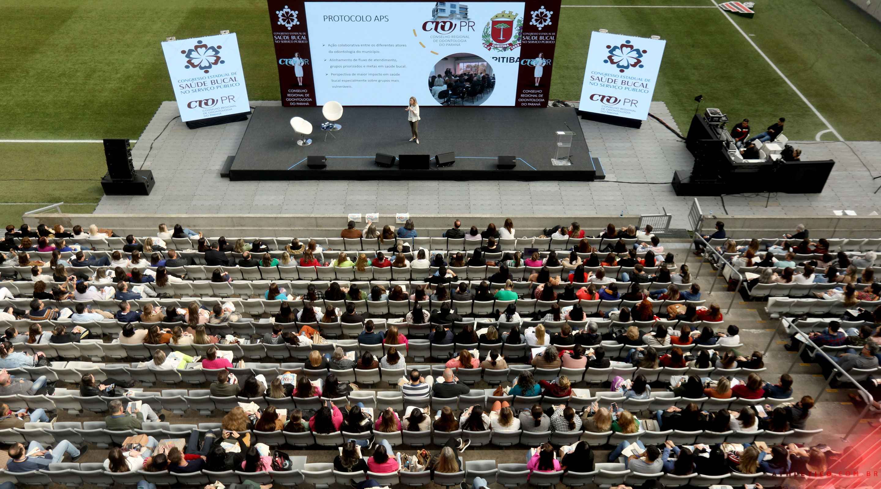 A Ligga Arena recebe, nesta quinta-feira (17) e nesta sexta-feira (18), o Congresso Estadual de Saúde Bucal no Serviço Público. O evento, organizado pelo Conselho Regional de Odontologia do Paraná (CRO-PR), reúne cerca de 1.600 profissionais de diversos municípios do estado.