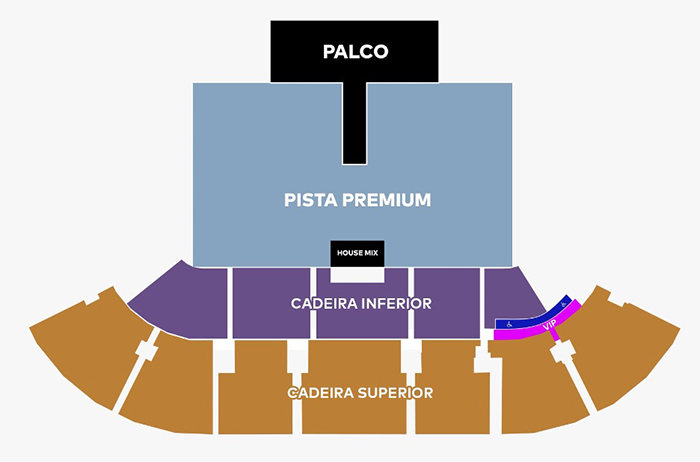Ingressos: os ingressos variam de R$ 290,00 a R$ 960,00 de acordo com o setor e modalidade escolhidos