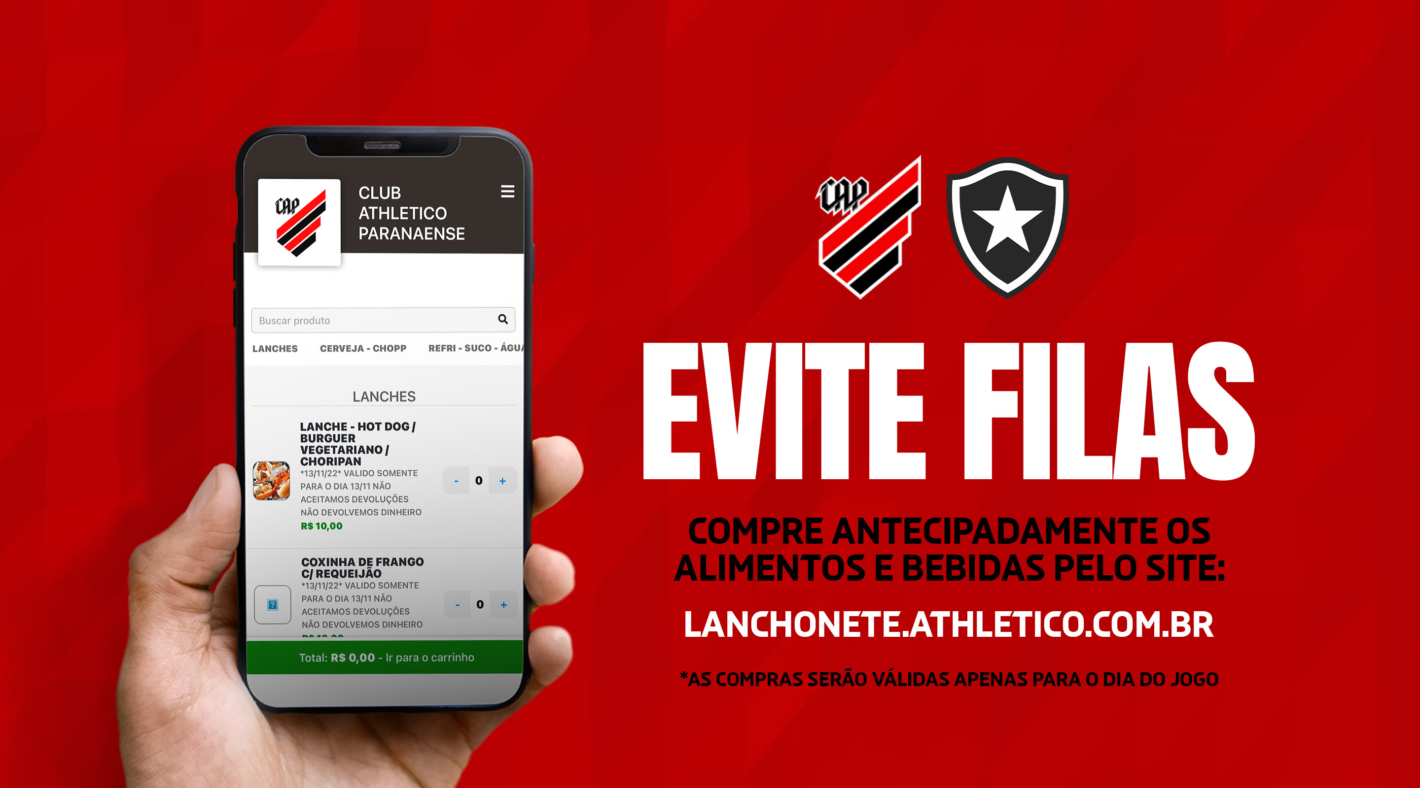 Os tickets de alimentos e bebidas para a partida diante do Botafogo, marcada para este domingo (13), já estão disponíveis no site lanchonete.athletico.com.br. A venda seguirá durante a partida.