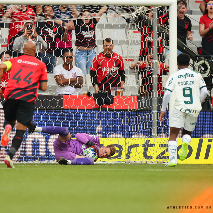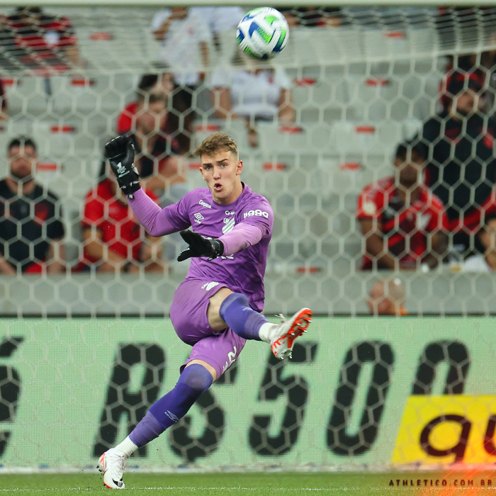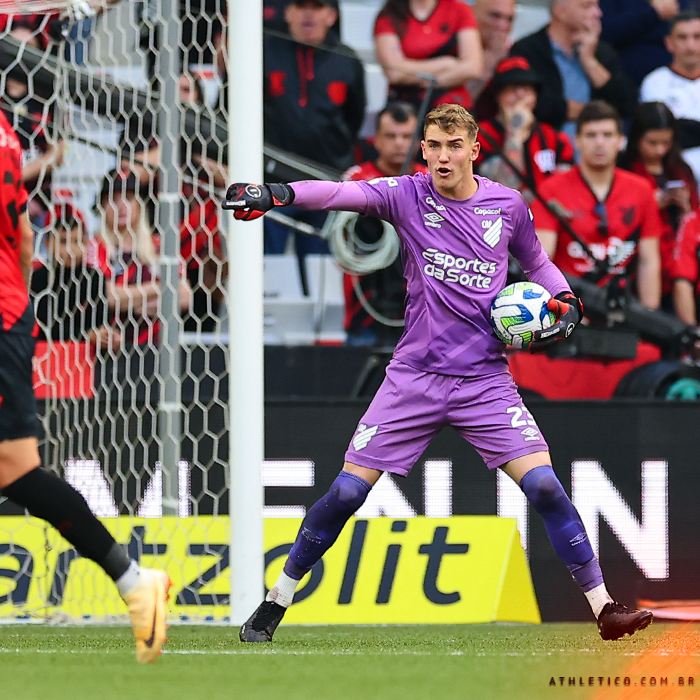 Nos sete jogos em que atuou na temporada, conquistou quatro vitórias e três empates. Não perdeu com o Furacão em 2023. Terminou duas partidas sem ser vazado. Praticou 32 defesas – metade delas de alta complexidade, evitando uma chance real de gol. Que tal estas aqui contra o Internacional? Ou estas aqui contra o Fluminense?