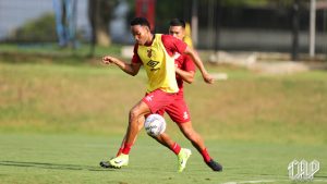 Os jogadores se apresentaram às 8h30 da manhã no CAT Caju. Após uma ativação física na academia, a equipe seguiu para a primeira atividade do dia no gramado, às 10h.