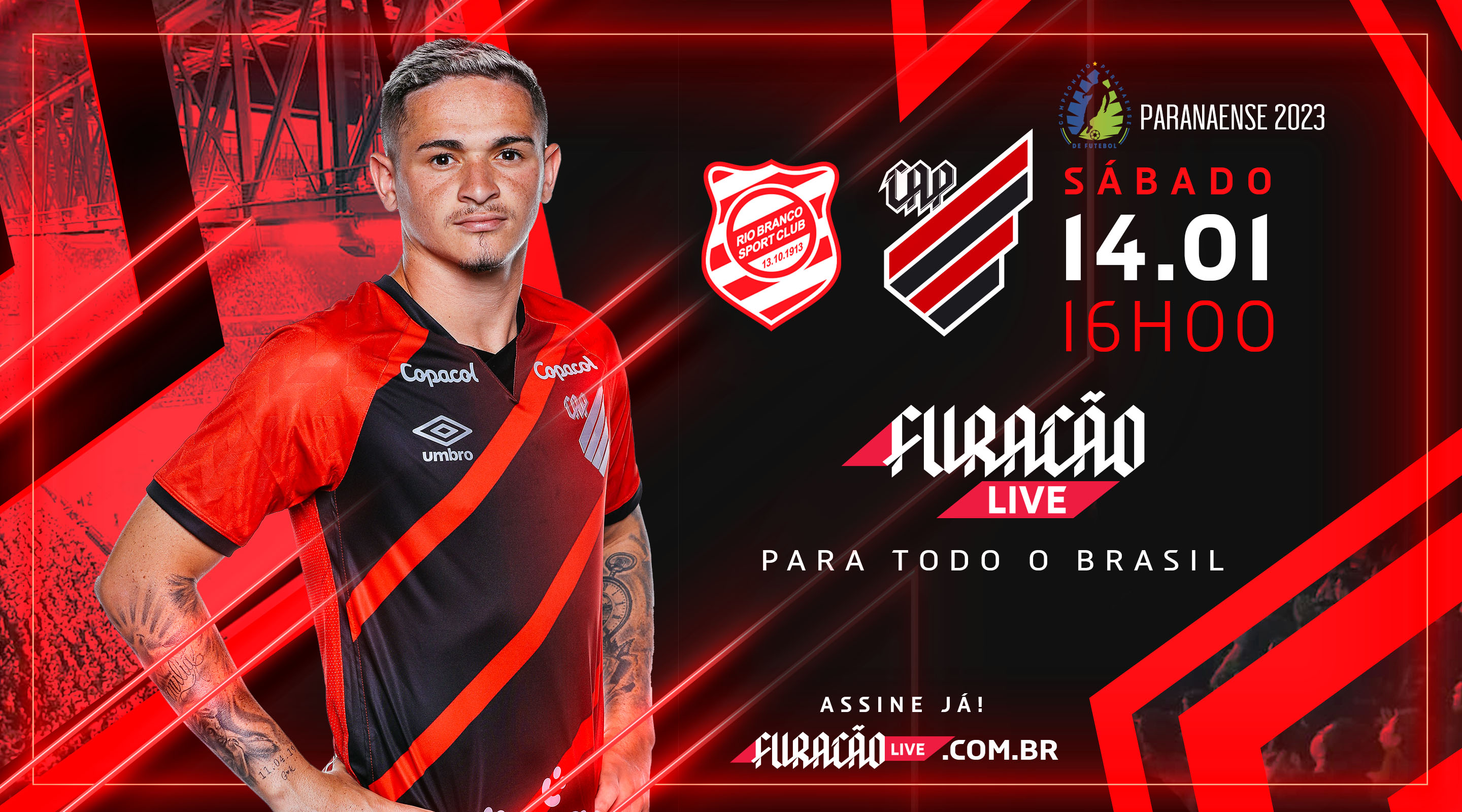 O Furacão Live transmite ao vivo todos os jogos do Rubro-Negro no Campeonato Paranaense! Todos! A começar pelo duelo deste fim de semana, em que o Athletico encara o Rio Branco, em Paranaguá!