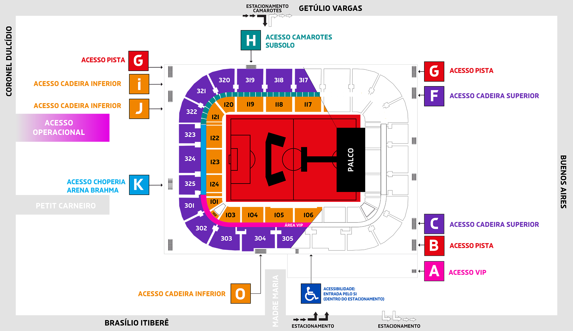– Camarotes: Portão H, na Av. Getúlio Vargas