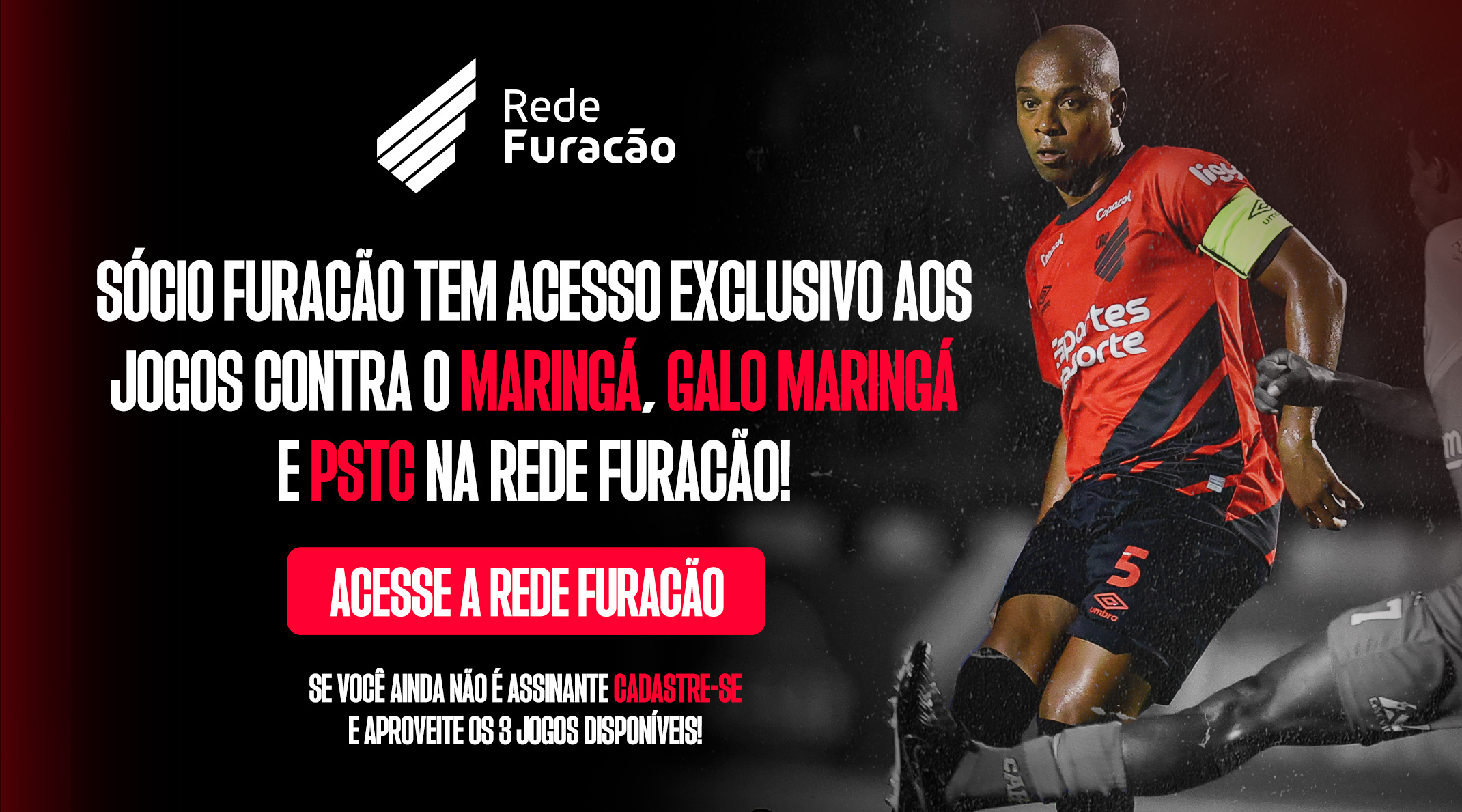 Os associados athleticanos poderão assistir gratuitamente na Rede Furacão aos três primeiros jogos em casa de 2024: Maringá (24/01), Galo Maringá (27/01) e PSTC (03/02).