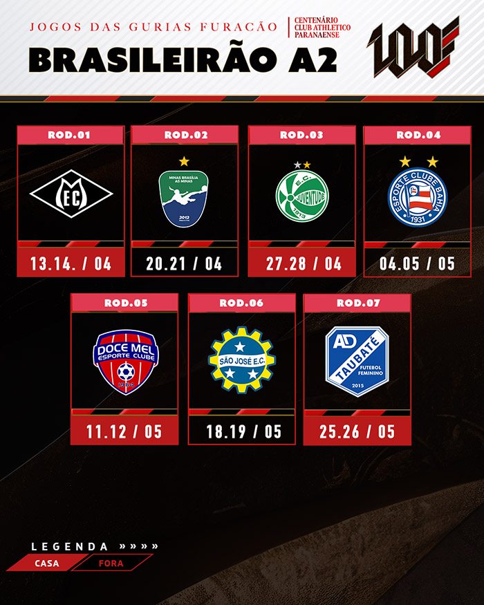 Tabela definida! Gurias Furacão estreiam contra o Mixto no Brasileiro Feminino A2