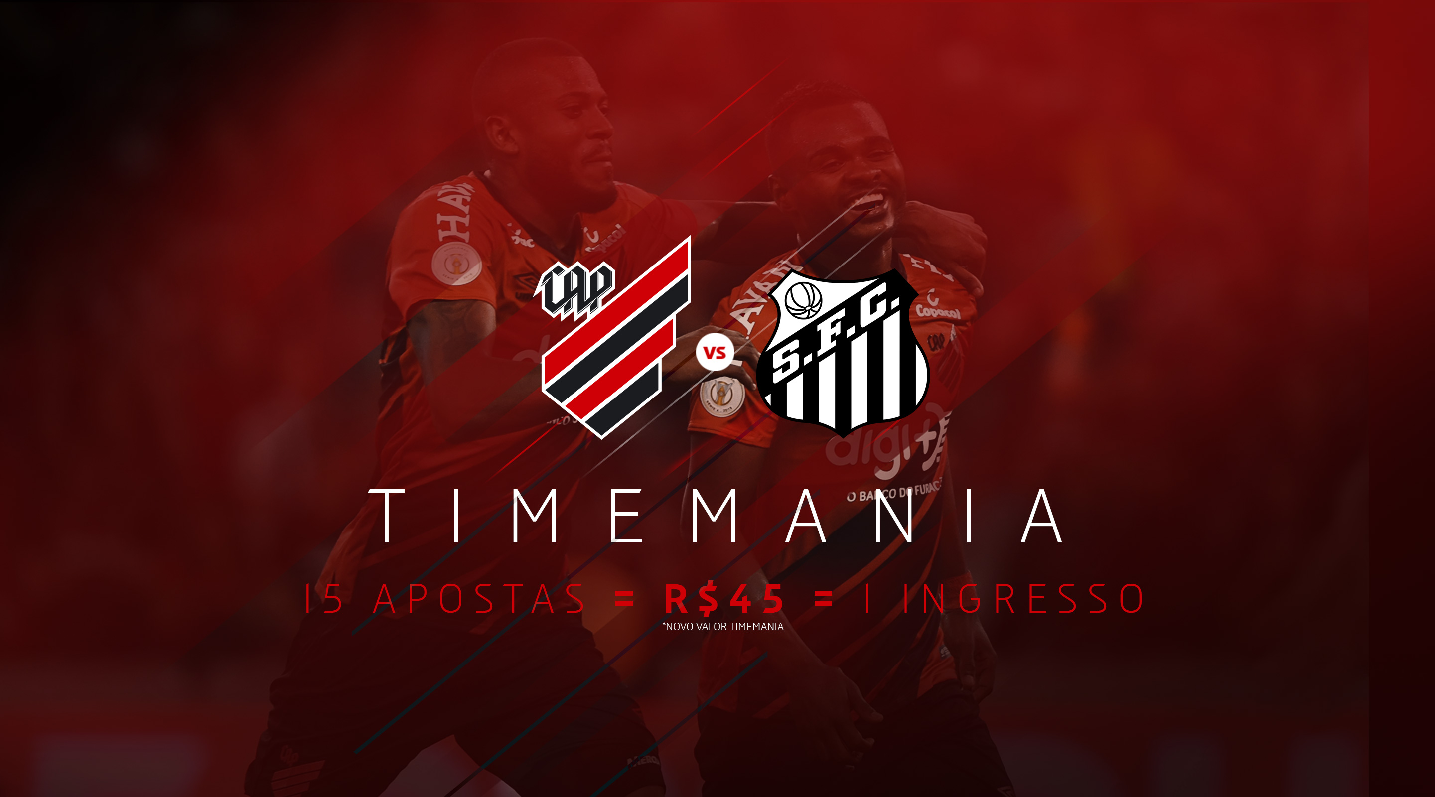 Despedida de um grande ano! Na noite desta quarta-feira (4), o Furacão enfrenta o Santos, às 19h, pela penúltima rodada do Campeonato Brasileiro. Com as trocas de Timemanias [15 apostas], a entrada para o jogo sairá por R$ 45!