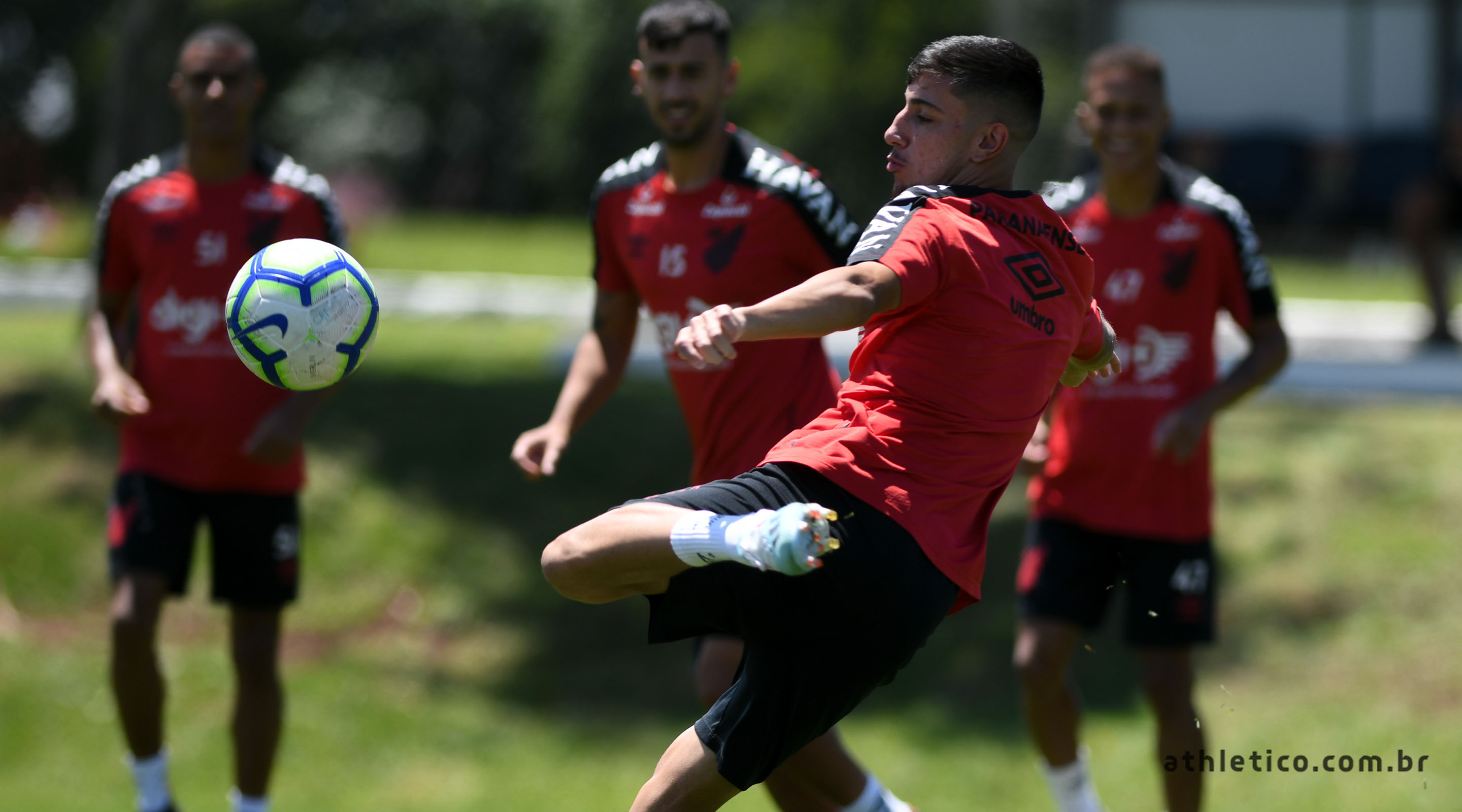No último treinamento, exercícios táticos. O posicionamento do time e as bolas paradas foram o enfoque em uma manhã ensolarada de sábado (7), com temperatura alta na capital paranaense.
