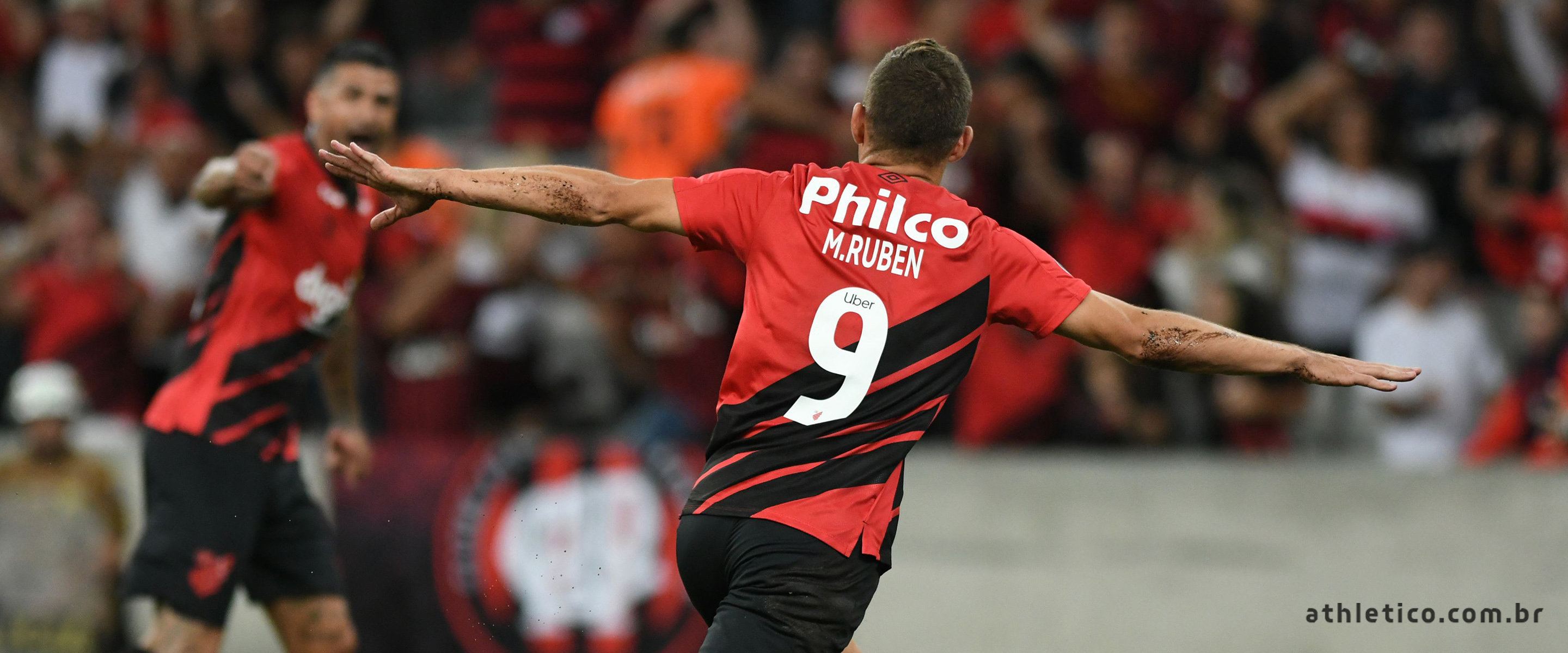 E nada parava Marco Ruben nesta noite! Nikão cobrou escanteio, a bola desviou no meio da área e Rony mandou no travessão. Na sobra, MARCO RUBEN mandou de cabeça para marcar o terceiro dele e do Furacão no jogo, aos 35′!