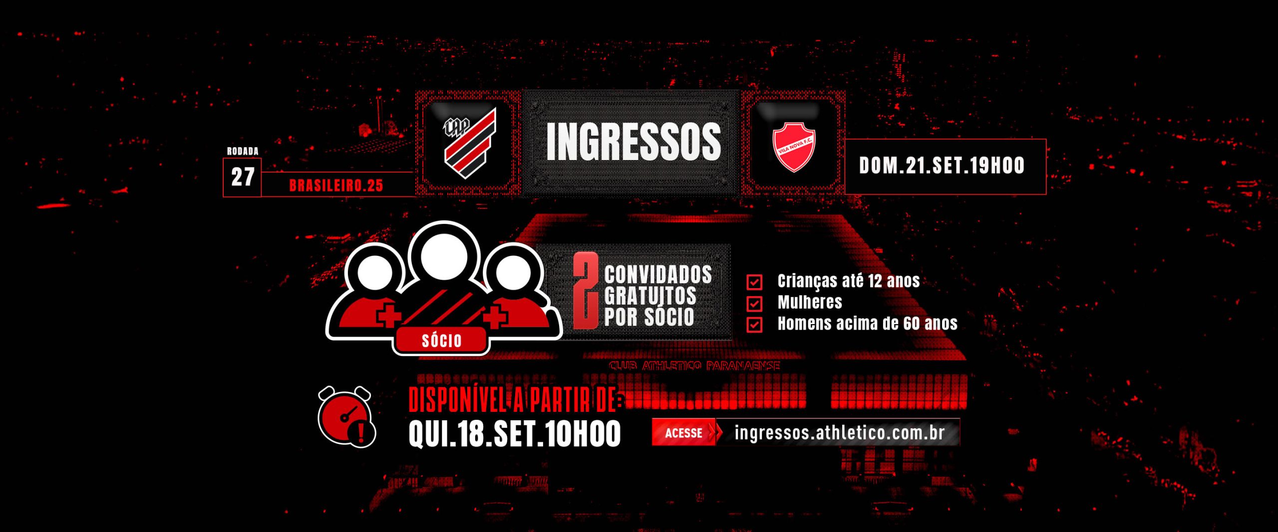 Clube Athletico x Vila Nova: Ingressos gratuitos para convidados estarão disponíveis a partir desta quinta-feira